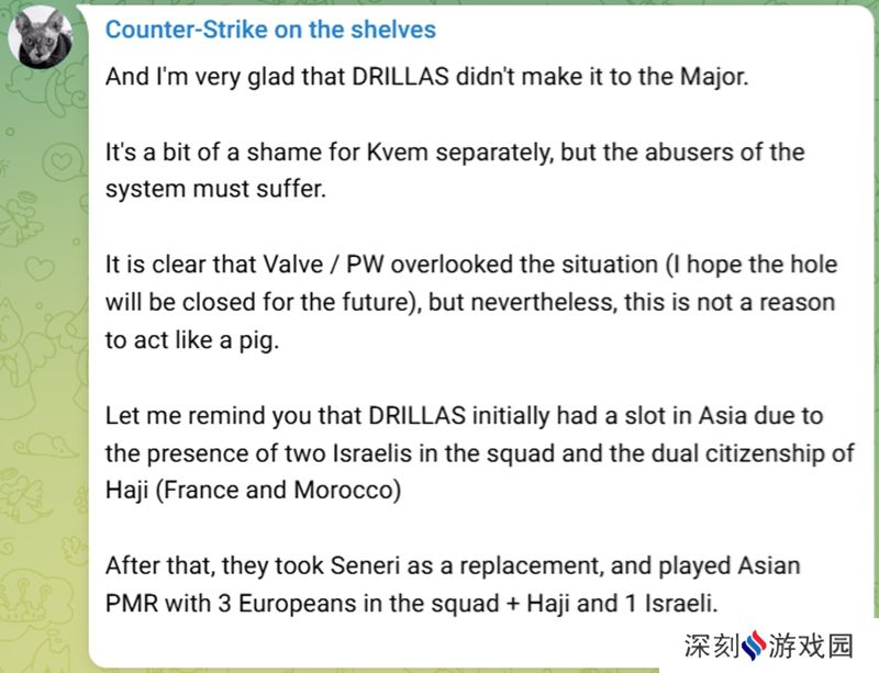 Valve会允许这样做,你知道如果他们能从Ohne(注:DRILLAS教练Ohnepixel是国外顶级网红)贴纸上赚钱,他们并不真正关心规定或作弊。