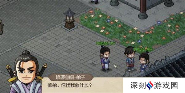 3、在琅琊剑阁门口找到弟子NPC对话。