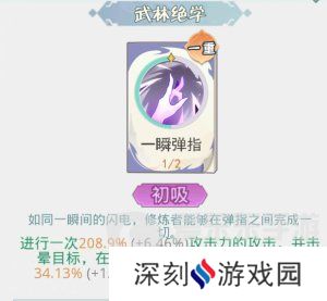 (1)主动技能“一瞬弹指”百分百眩晕敌方接下来三个回合增加击晕概率,算是控制输出类型主动技能,非常好用 .后面更换天阶功法“绝世神剑”同样造成伤害同时眩晕敌方