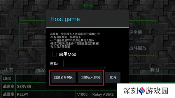 5、输入密码,点击创建房间将密码告诉好友,等待好友加入即可。